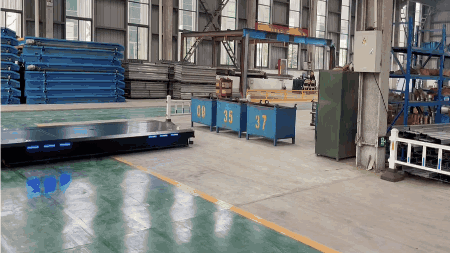 当天上午8:30至9:30,与会专家团队一行在江苏润邦技术总监谢庆均和主持人胡新朋的带领下,深入润邦工厂现场,观摩了由我公司自主研发的AGV停车机器人和叠板机、升降机系统的实际运行演示。